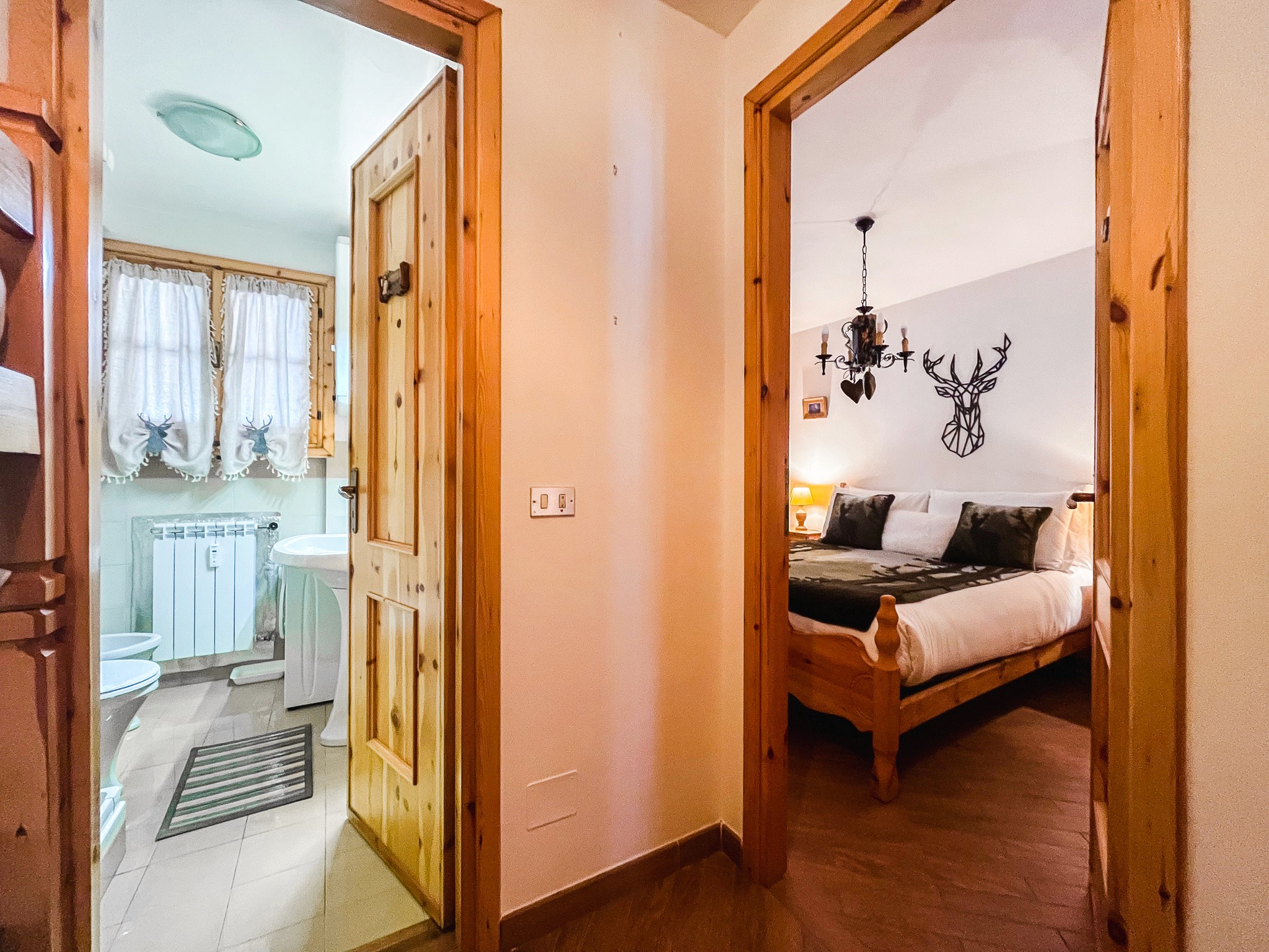 A pochi passi dal torrente che scende impetuoso da Mascognaz, dove l’acqua si apre in piccole cascate prima di arrivare in paese, nasce il Rifugio delle Cascate: un bilocale autentico, caldo, semplice, che profuma di legno e di montagna vissuta. Qui il rumore dell’acqua diventa una carezza. I tessuti in stile alpino, i dettagli in legno e i piccoli simboli della tradizione valdostana creano un’atmosfera di casa, quella vera, dove il tempo rallenta e ogni gesto ritrova il suo ritmo naturale. Il soggiorno è raccolto e accogliente, perfetto per una cena in tranquillità dopo una giornata sulle piste o lungo i sentieri. La camera matrimoniale, con i suoi toni caldi, è un abbraccio sereno. Fuori, il suono dell’acqua è una presenza costante: ricorda che qui la natura non è uno sfondo, ma una compagna di viaggio. Un rifugio per chi cerca autenticità, pace e il piacere di un luogo che non finge: accoglie. Not just a holiday, a way to love. enjoy. connect.